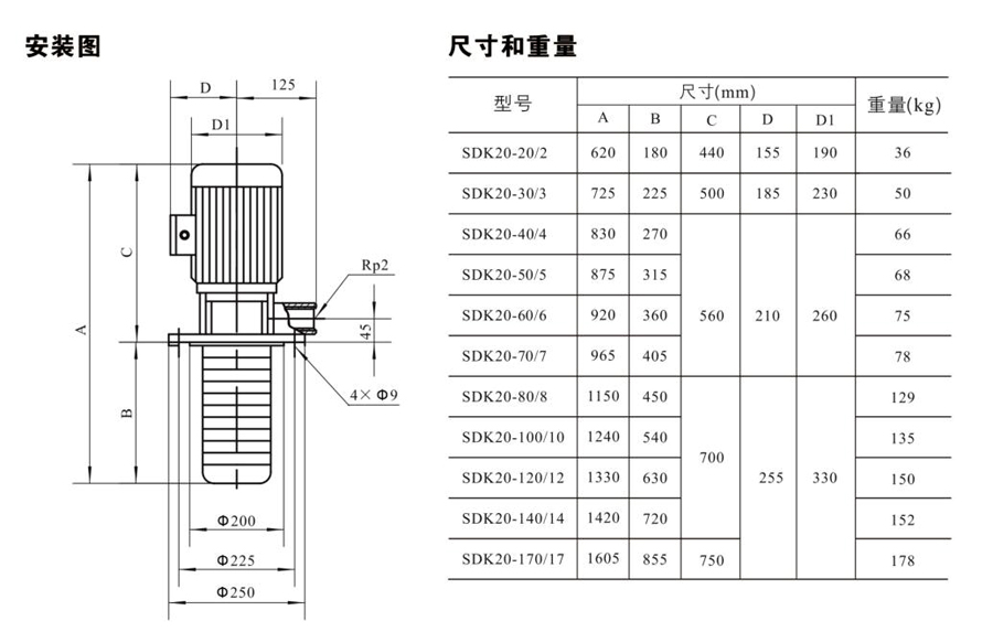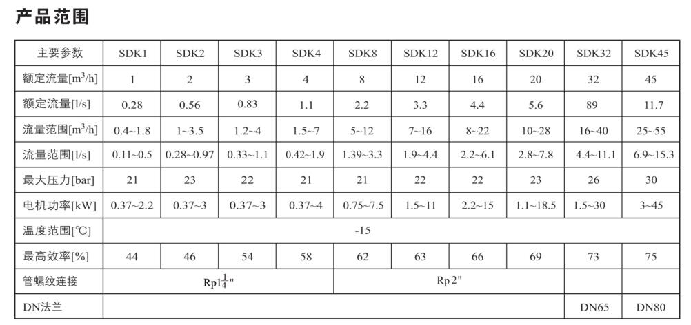 SDK/SDKT為配用標準電機的非自吸立式多級離心泵,電機軸和泵軸用聯軸器直接聯接的結構。為滿