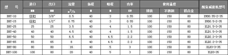 上海二泵DBY系列電動隔膜泵是一種新型的泵類,近年來,由于在隔膜材質上取得了突破性的進展, 上越來越多的工業化國家采用此種型式的泵,取代部份離心泵、螺桿泵,來應用于石化、陶瓷、冶金等行業,產品設計均參考美國ABEL公司樣機,該泵適用于低壓,即出口壓力≤3kgf/cm2的場合。